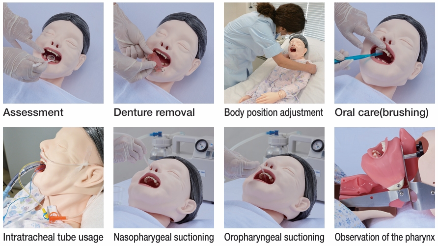 – หุ่นจำลองผู้ป่วยสูงอายุเพศหญิง จำลองสภาวะในช่องปากของคนสูงอายุ พร้อมทั้งมีสภาพสุขภาพฟันที่ต้องการดูแลเป็นพิเศษ ทั้งฟันโยก โรคปริทันต์ หรือฟันที่มีการบูรณะแบบต่างๆ ที่ต้องการการดูแลจากบุคลากรที่เกี่ยวข้อง