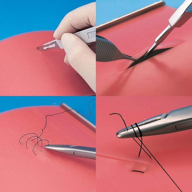 ใช้สำหรับฝึกกรีดและเย็บรอยแผล สามารถเปลี่ยนแผ่นเย็บที่ใช้ฝึกได้
