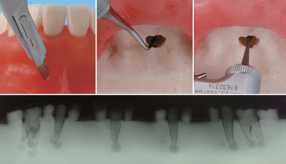 – แบบจำลองใช้สำหรับฝึกทำศัลยกรรมปลายรากฟัน มีการจำลองการบาดเจ็บที่ปลายรากฟัน ด้านขวาของแบบจำลองมีฟันซี่ #11, #24, #26 ด้านซ้ายแบบจำลองมีฟันซี่ #35, #36, #44